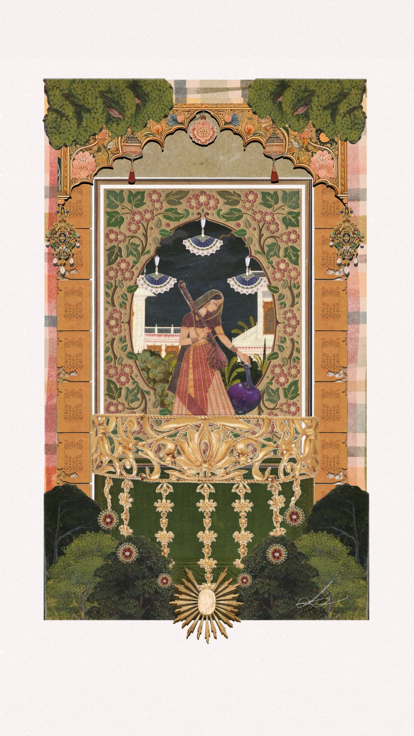 South Asian art inspired collage prints by artist Sanjana Narayanan.